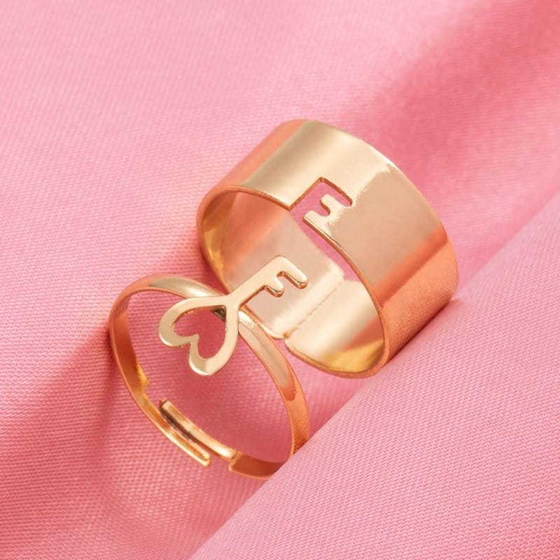 Bewahren Sie Ihre Liebe sicher und verschlossen mit diesem Set aus Ringen, das ein Herz-Schlüssel-Design darstellt. Diese besten Freundschaftsringe sind das perfekte Symbol für ewige Freundschaft und Liebe. Sie sind in den Farben Silber oder Gold erhältlich und passen zu jedem Stil. Hergestellt aus widerstandsfähigem Zinklegierung, sind diese Ringe langlebig und stilvoll zugleich. Mit ihrer verstellbaren Größe passen sie sich jedem Finger an und bieten so maximalen Komfort und Flexibilität. Zeigen Sie Ihre besondere Verbindung mit diesen einzigartigen und bedeutungsvollen Ringen.
