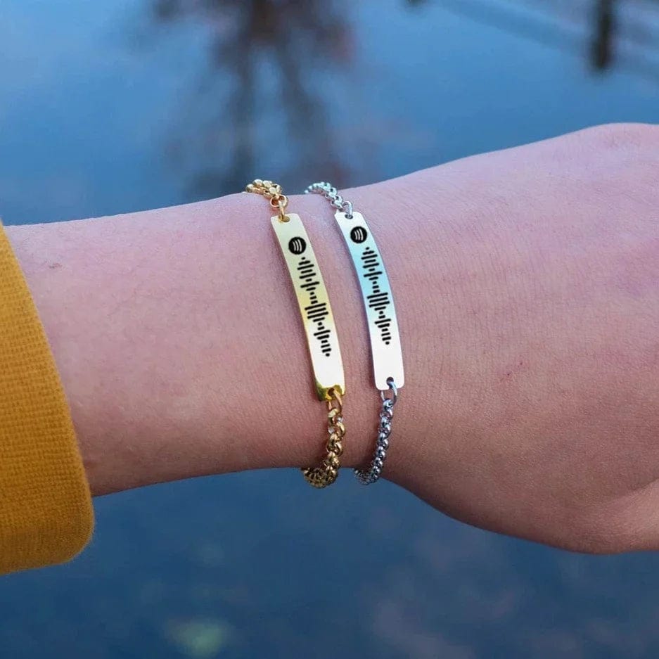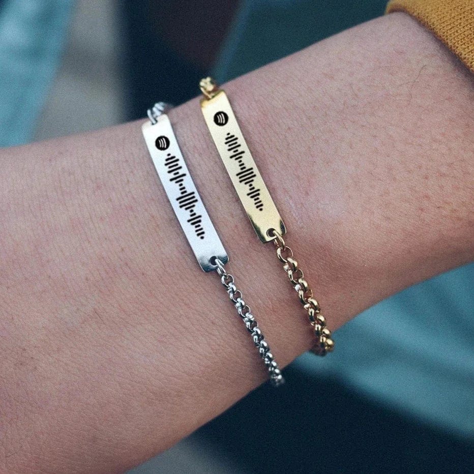 Entdecken Sie das ultimative Symbol Ihrer besonderen Momente mit unserem Spotify Code Persönliches Armband. Dieses einzigartige Schmuckstück ermöglicht es Ihnen, Ihre Lieblingsmusik oder einen bedeutungsvollen Song immer bei sich zu tragen. Perfekt als Geschenk für Ihre Liebsten oder als persönliches Andenken, dieses Armband kombiniert Stil und Emotion. Hergestellt aus hochwertigem 316L Edelstahl, ist es sowohl wasserfest als auch beständig gegen Anlaufen. Die präzise Lasergravur stellt sicher, dass Ihr Spotify Code klar und deutlich bleibt, sodass Sie jederzeit Ihre Musik abspielen können.